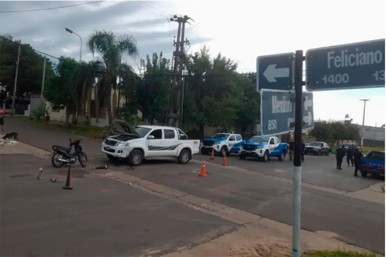El episodio se registró este martes por la mañana, alrededor de las 09:45, tras un siniestro vial ocurrido en la intersección de calles Mendiburu y Feliciano. En ese lugar habían colisionado una camioneta Toyota Hilux y una motocicleta Zanella Due 110 cc, cuyo conductor, de 28 años, resultó lesionado.